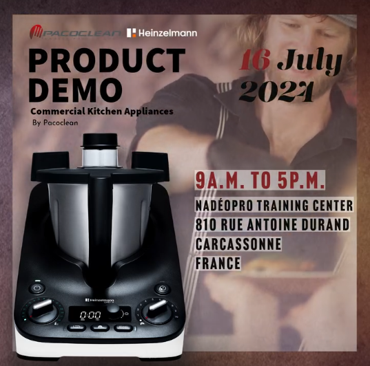 Products Demo on July 16th from 9 a.m. to 5 p.m. at the NadeoPro Training Center located at 810 rue Antoine Durand in Carcassonne. They will showcase the Heinzelmann CHEF-X and other top-of-the-line kitchen solutions.