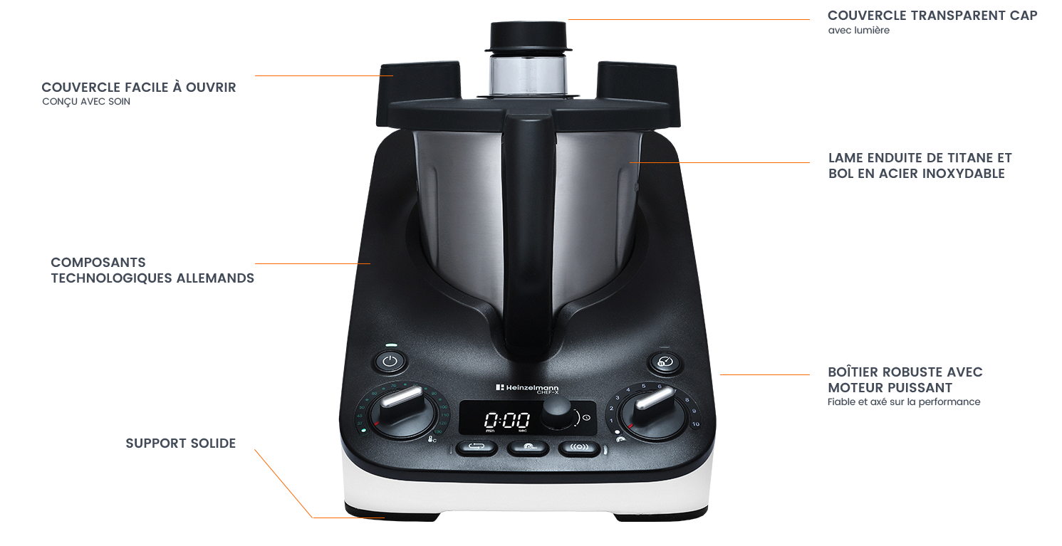 Nous avons intégré une lumière très utile pour que vous puissiez garder le contrôle de ce qui se passe dans le bol.