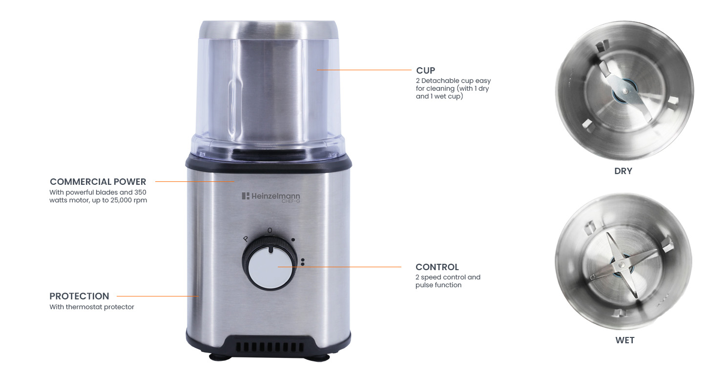 Grind up the freshest ingredients effortlessly and in record time with the Heinzelmann CHEF-G. It’s perfect for peppercorns, cinnamon sticks, star anise, nuts and much more. Grinding your own spices means you can maintain a large stock of whole spices longer, without reordering or risking stale product.